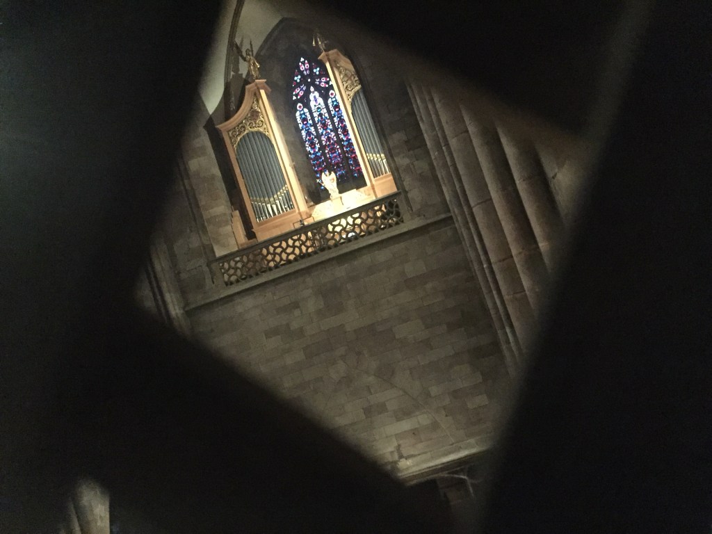 Wenn ich im Münster ministriere, dann sitze ich manchmal so, dass ich bis zur Eucharistie den Thomas ansehen kann. Nach der Kommunion sitze ich so, dass ich Jesus im Blick habe. Und es erinnert mich, dass das ganze Christenleben ein sich hinbewegen zu Jesu ist. Geprägt von Zweifel und von den Momenten, der Gewissheit. Das Wort Gottes hören wir, wir nehmen es an, wir versuchen es zu verstehen, wir zweifeln und sind unsicher. Dafür schenkt uns Gott seine Gegenwart im Leib und Blut. Die Eucharistie ist ein Ort an dem Zweifel aufgehoben werden, denn hier ist absolut Erinnerung, ein Aha-Moment, des Lebens für das Leben. Aber schon danach bleibt nichts als Glaube, ein Glaube, der von Prämissen ausgeht, die schlussendlich nach menschlichen empirischen Ansätzen nicht belegbar sind. Es bleibt als Gewissheit allein die Grundhaltung, die Offenheit, die Beziehung zu den Erfahrungen, nicht allein von mir, sondern von allen vor mir. Und es bleibt, der so schwere Satz: Selig, die nicht sehen und doch glauben!